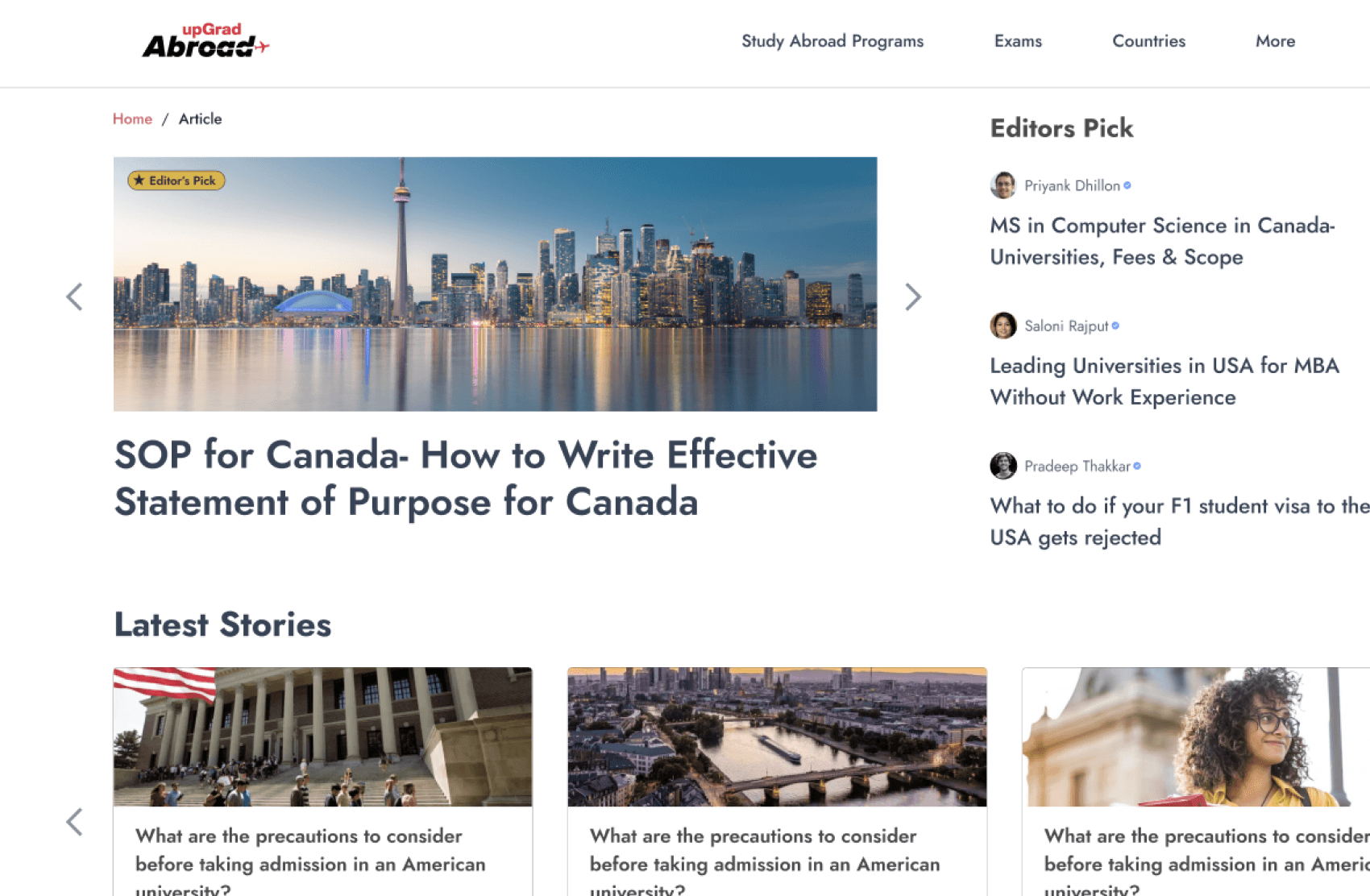 upGrad Abroad is a vertical of upGrad focused on study-abroad aspirants, offering exam preparation, country guides, and long-form informational content.