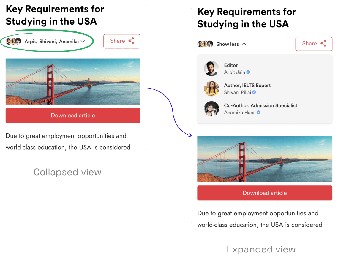 Articles often involved multiple contributors, but showing all authors upfront consumed valuable first-fold space.