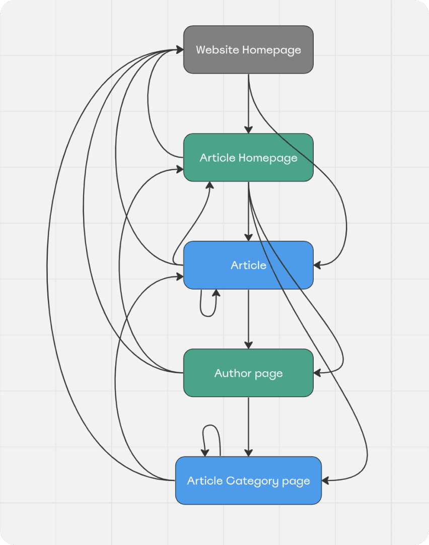 Article pages were built on WordPress, while non-article pages were on an internal CMS